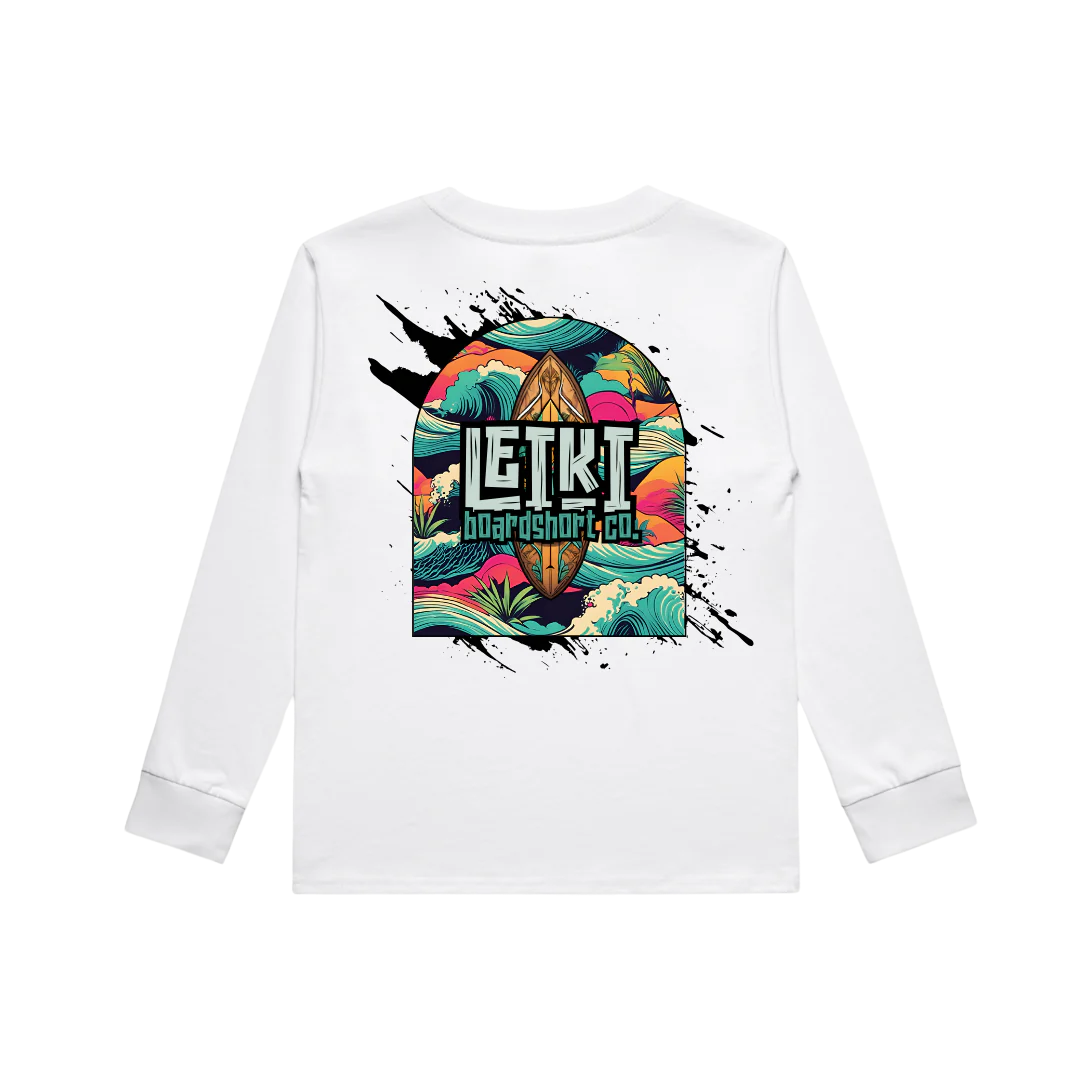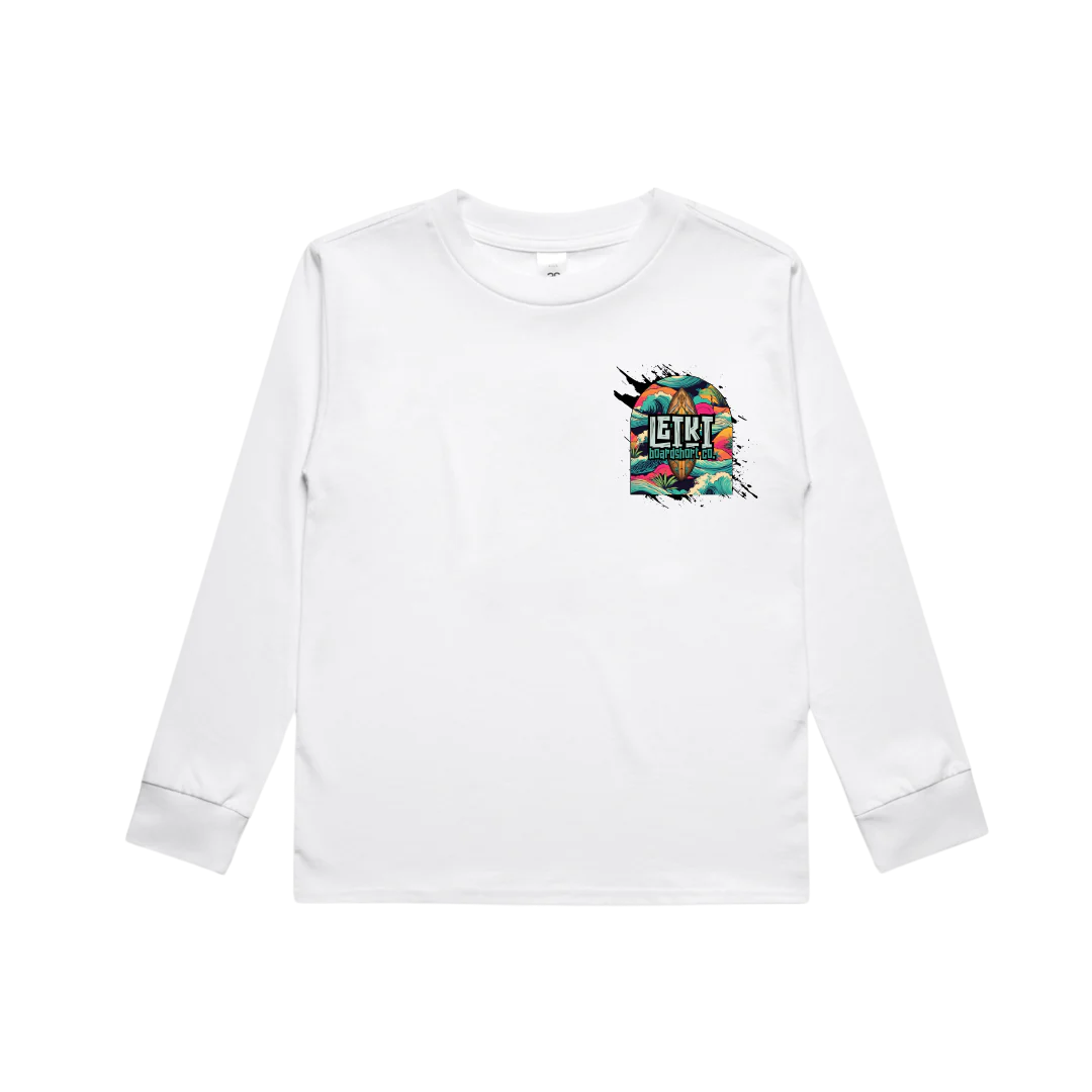 Inspired by the heavy drops and endless point breaks of El Salvador, this long sleeve tee is made for the next generation of wave chasers. The Slammin in El Salvador Youth Long Sleeve delivers serious comfort and bold surf style, perfect for beach days, skate breaks, and backyard chill.